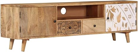 Festnight Tv Schrank Vintage Fernsehtisch Tv Lowboard Tisch Retro Fernsehschrank Holz Tv Board Mangoholz Massiv 140 X 30 X 45 Cm Amazon De Kuche Haushalt