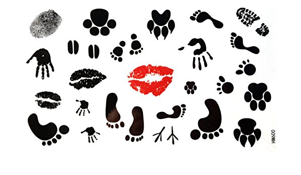 Sehen Aus Wie Echte Tattoos Rote Lippen Schwarz Handabdruck Schwarz Fussabdruck Tier Fussabdruck Amazon De Beauty