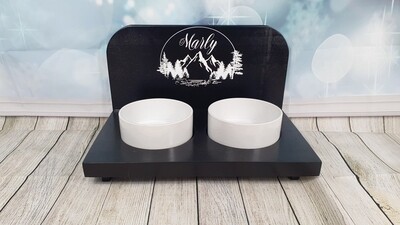 Futterstation Hundenapf Fressnapf Futterbar Von Splittprofi Mit 2 Napfen Aus Keramik Weiss Mit Individueller Gravur Splittprofi De