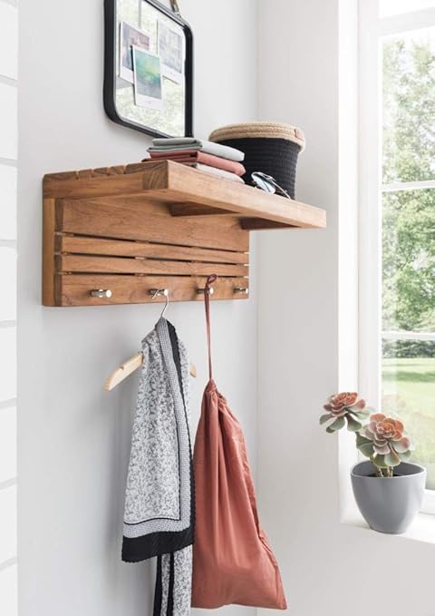 Vencipo Wandregal Holz Schlusselbrett Organizer Mit 4 Haken Regal Fur Organizer Kuche Gewurzregal Wand Dekoration Fur Bucherregal Kinderzimmer Deko Wohnzimmer Aufbewahrungs Badezimmer Amazon De Kuche Haushalt
