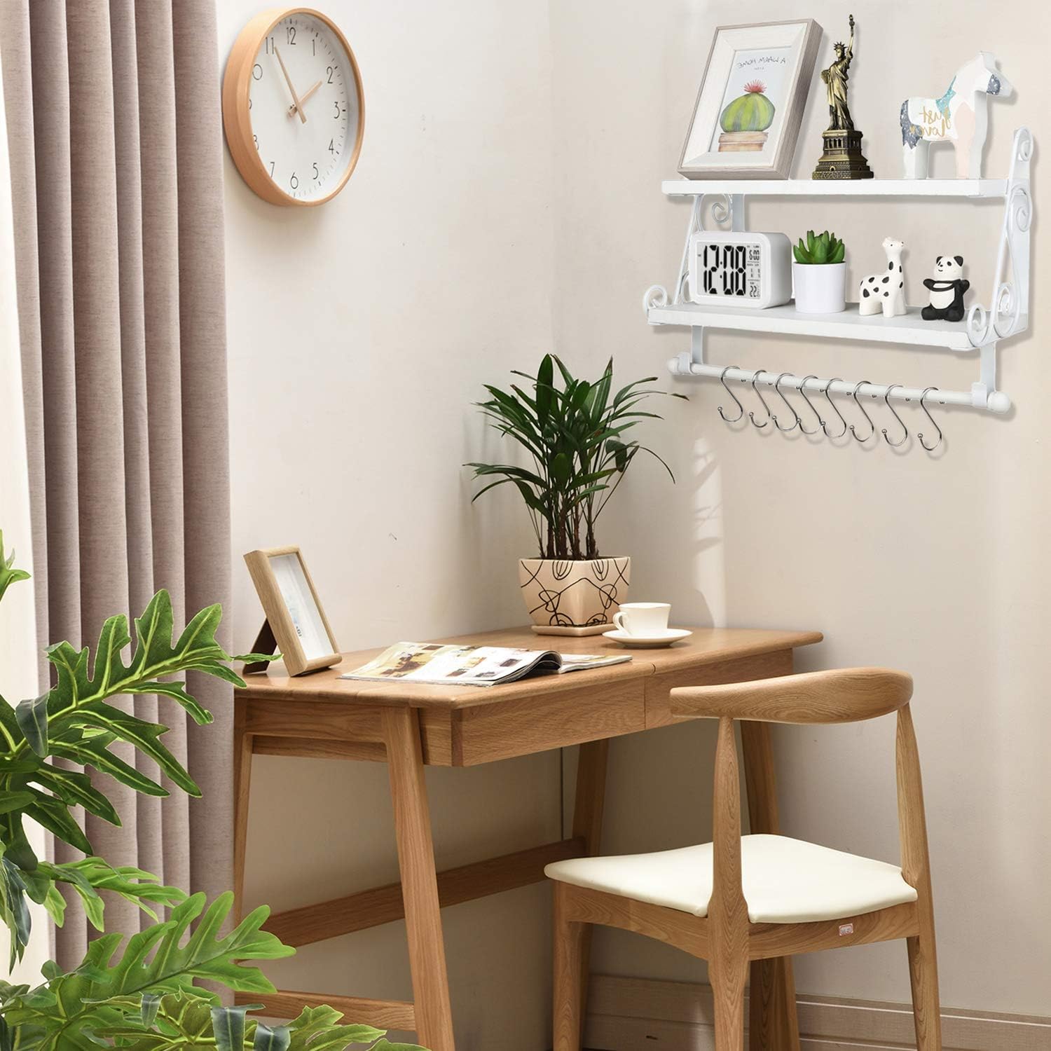 Vencipo Wandregal Holz Fur Organizer Kuche Gewurzregal Mit 8 Metall Haken Weiss Regal Wand Fur Badezimmer Aufbewahrungs Mit Handtuchhalter Bucherregal Holz Fur Wanddeko Kinderzimmer Amazon De Kuche Haushalt