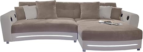 Lifestyle4living Ecksofa In Beige Kunstleder Und Microfaserstoff Inkl Multimediapaket Sofa Hat 6 Kissen Funktionssofa Mit Led Beleuchtung Amazon De Kuche Haushalt