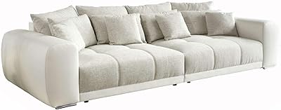 Lifestyle4living Big Sofa In Weiss Beige Struktur Stoff Kunstleder Xxl Couch Inkl 8 Extragrossen Rucken Kissen Und Hochwertiger Federkern Polsterung Amazon De Kuche Haushalt