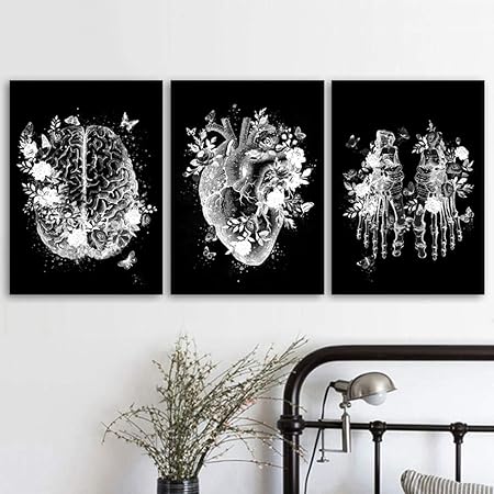 Amazon De Wandbild Schwarz Weiss Anatomie Skelett Leinwand Wandbild Nordische Kunst Abstrakt