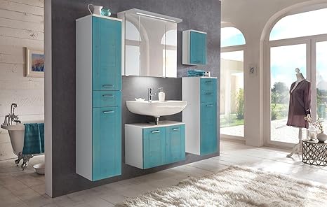 Badeinrichtung Badezimmereinrichtung Badmobel Komplettset Badezimmer Kiefer Blau Weiss Hochglanz Spiegelschrank Badezimmerausstattung Amazon De Kuche Haushalt