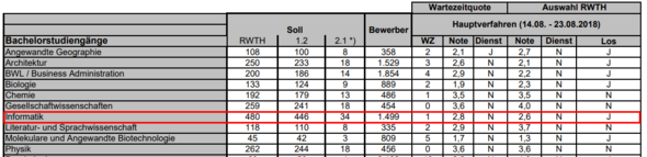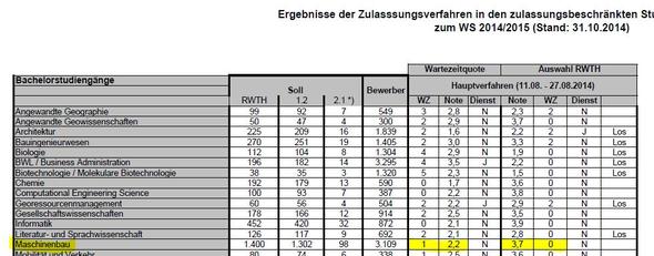 Rwth Aachen Wie Lese Ich Die Nc Tabelle Schule Ausbildung Und Studium Studium