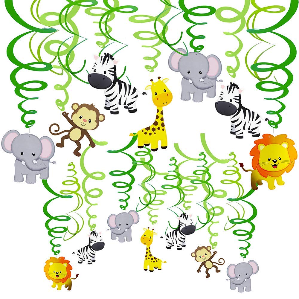 Basteln Malen Nahen 30 Stuck Dschungel Tiere Hangen Swirl Dekorationen Grune Safari Party Wald Tier Thema Zubehor Fur Baby Dusche Kinder 1 Geburtstag Kindergarten Klassenzimmer Schlafzimmer Badezimmer Tisch Decke Dekor Kuche