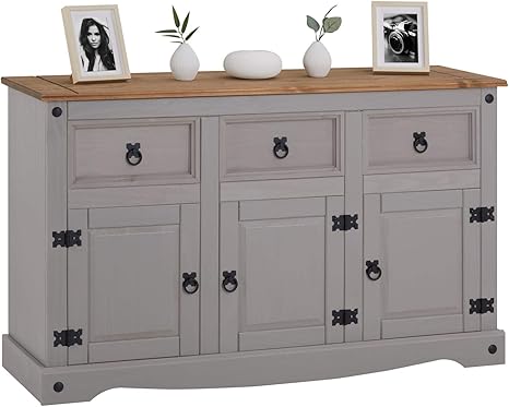 Caro Mobel Sideboard Ramon Im Mexiko Stil Kommode Kiefer Massiv Grau Lasiert Mit 3 Schubladen Und 3 Turen Amazon De Kuche Haushalt