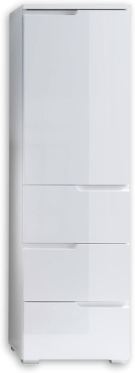 Die schmale Kommode ist in Hochglanz Weiß gehalten und überzeugt durch ihr zeitloses modernes Design - passt sich verschiedensten Badezimmer-Einrichtungen an Der Standschrank bietet mit drei geräumigen Schubladen viel Stauraum für Kosmetik Make Up Hygiene-Artikel Handtücher oder ähnliches Die silberfarbenen Griffe am Badschrank sorgen für ein einfaches Öffnen und Schließen der Schubladen und bilden zugleich einen eleganten Kontrast mit den Hochglanz Weißen. 1 Insgesamt 1 Bewertungen EUR 11503 Neu. Worauf es beim Kauf ankommt wie du die Badezimmermöbel kombinierst und wie du sie richtig pflegst erfährst du hier.