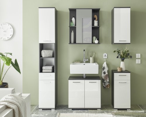 Badkommode Rienca In Weiss Hochglanz Und Dunkelgrau Modern