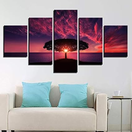 Lonllhb Painting Leinwand Gemalde Wand Kunst Rahmen 5 Stuck Baum Rot Sunset Durch Meer Landschaft Bilder Modulare Hd Drucke Abstrakte Poster Hause Decor Prints Posters Amazon Canada